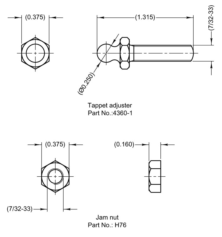 Note: Examples of OB tappets have been seen with 1/4-26 thread. So when retrofitting to earlier tappets, be sure to check the thread. These only work with tappets tapped to 7/32-33.